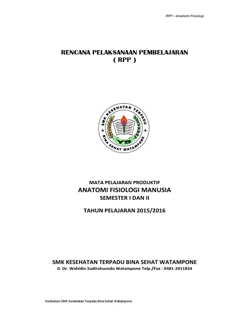 Rpp Anatomi Fisiologi Smk Keperawatan K13 - Silabus Mata Pelajaran Anatomi Dan Fisio 1 - Silabus (1) satuan pendidikan :